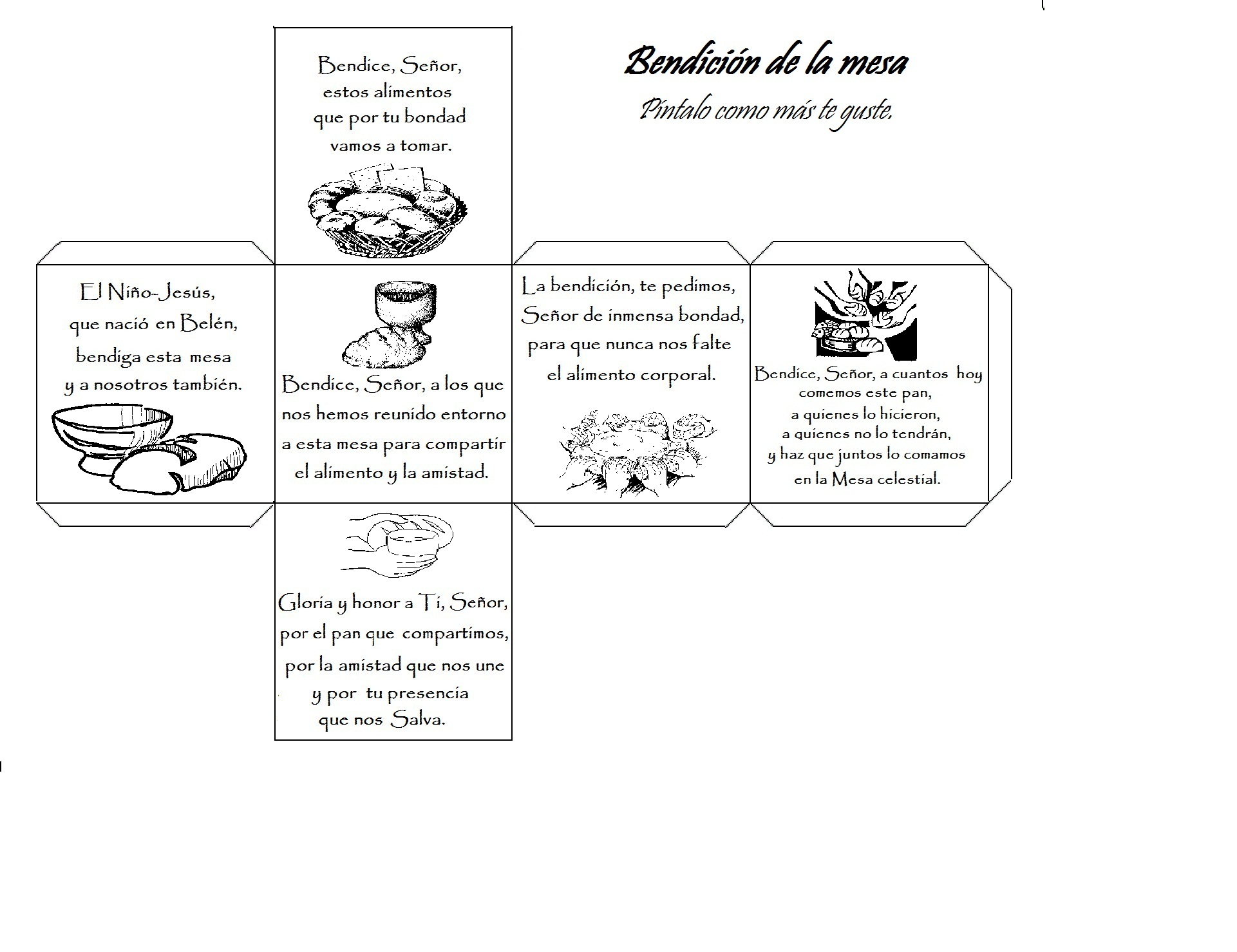 Con el cubo, cada día de la semana, podrás dar gracias a Dios de una manera diferente por los alimentos que vais a comer y compartir.