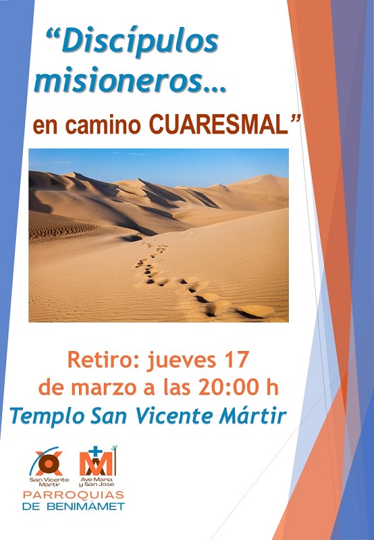 El jueves 17, tendremos, después de la Eucaristía, el RETIRO: Lo mismo que necesitamos ejercitarnos tanto intelectual como físicamente, y lo vemos normal y lógico, lo debemos de hacer espiritualmente. El tiempo para hacer Ejercicios Espirituales es mucho más prolongado, y muchas veces creemos que no tenemos tiempo. Por eso para facilitar las cosas, una vez al mes, en la Comunidad Parroquial, desde hace ya 9 años los venimos haciendo. En este Ciclo Pastoral lo haremos sobre los “Discípulos  misioneros”. Jesús necesita de nosotros para construir la Iglesia, la Comunidad Parroquial, para poder llevar a cabo nuestro objetivo pastoral“La Parroquia es c@sa de tod@s”, el lema de este ciclo: “evangelizada y evangelizadora”, discípulos-evangelizados, misioneros-evangelizadores.  No dejes de ejercitarte espiritualmente, lo necesitas. El Señor te espera.
