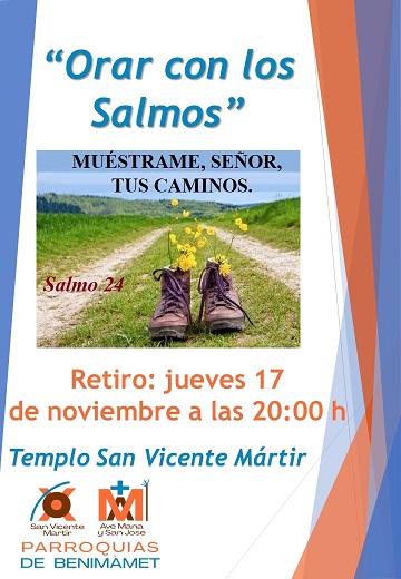 El jueves 17, tendremos, después de la Eucaristía, el RETIRO: Lo mismo que necesitamos ejercitarnos tanto intelectual como físicamente, y lo vemos normal y lógico, lo debemos de hacer espiritualmente. El tiempo para hacer Ejercicios Espirituales es mucho más prolongado, y muchas veces creemos que no tenemos tiempo. Por eso para facilitar las cosas, a la hora de ejercitarnos, una vez al mes, en la Comunidad Parroquial, desde hace ya 10 años los venimos haciendo. En este Ciclo Pastoral lo haremos sobre los “SALMOS”. Este jueves meditaremos el “Salmo 24”. No dejes de ejercitarte espiritualmente, lo necesitas. ¡El Señor te espera!