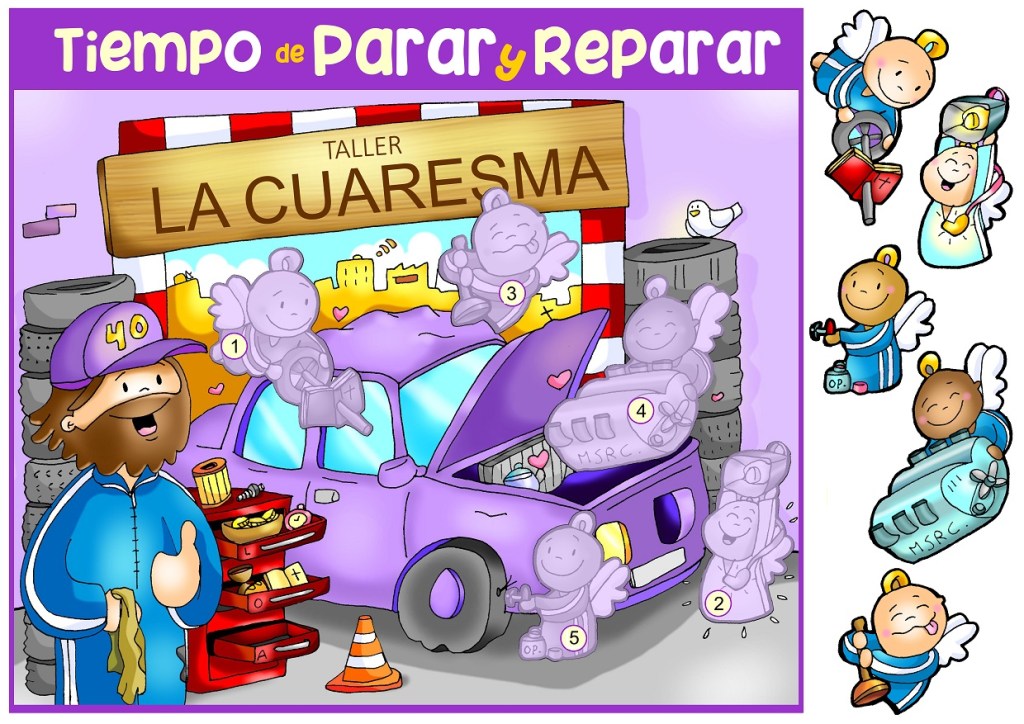 Nos dice nuestro querido Patxi Fano: «Queridos amigos os compartimos el material de cuaresma, un regalo ser cauce y compartir la Palabra de Dios para este tiempo… en este enlace están los dibujos y explicaciones. También os comparto la canción y el video que ha preparado Unai Quirós una alegría trabajar juntos por el Reino. A parar y reparar, paremos el coche dejémosle a Jesús nuestra llaves y dejémonos hacer por Él».