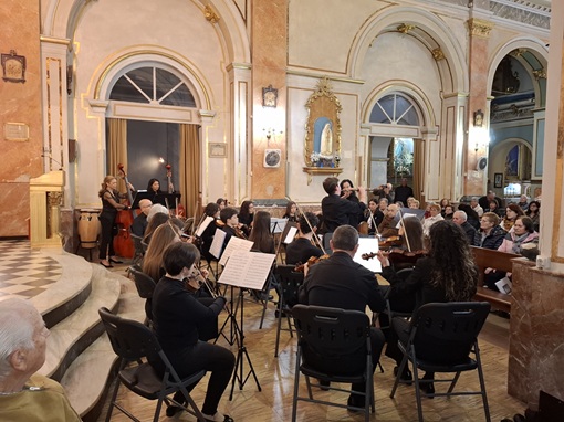 Desde la elegancia y profundidad del Concierto para oboe y cuerdas de Telemann, que hoy ha cobrado un brillo especial con la intervención de Vicent Benedicto, hasta la delicadeza de piezas que nos han invitado a la cercanía con Dios, con el “Cerca de Ti, Señor”, con la voz de la soprano Raquel Roig. Hemos escuchado también la alabanza solemne del “Domine Deus” de Vivaldi, la paz serena de Bach “Jesús, alegría de los hombres”, y la intensidad espiritual de “La Misión” de Morricone, con el Coro de la Escuela SIOAM, interpretando “Vita nostra”, que nos ha recordado la entrega, el sacrificio y la esperanza de los jesuitas españoles del siglo XVIII.