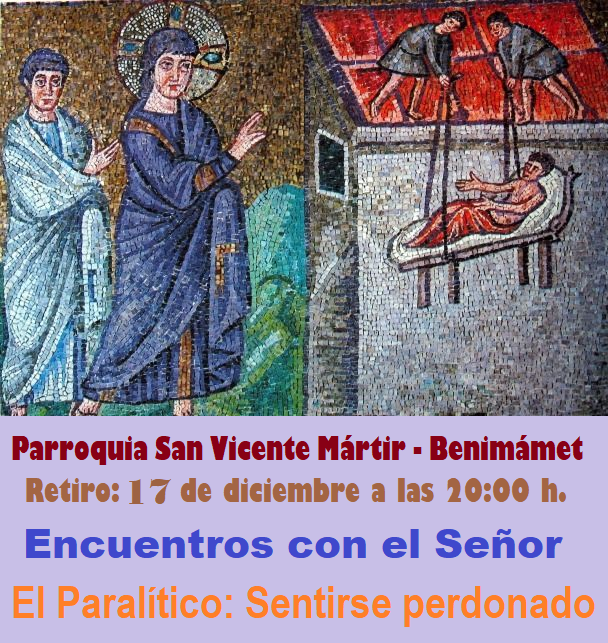 El jueves 17, tendremos, después de la Eucaristía, el RETIRO: Lo mismo que necesitamos ejercitarnos tanto intelectual como físicamente, y lo vemos normal y lógico, lo debemos de hacer espiritualmente. El tiempo para hacer Ejercicios Espirituales es mucho más prolongado, y muchas veces creemos que no tenemos tiempo. Por eso para facilitar las cosas, una vez al mes, en la Comunidad Parroquial, desde hace ya 8 años los venimos haciendo. En este Ciclo Pastoral continuaremos centrándonos en los encuentros con el Señor. Este jueves meditaremos “El Paralítico: Sentirse perdonado”. No dejes de ejercitarte espiritualmente, lo necesitas. El Señor te espera.