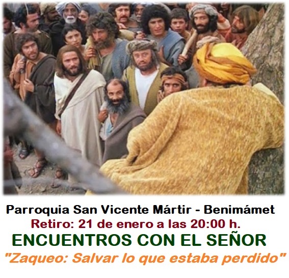 El jueves 21, tendremos, después de la Eucaristía, el RETIRO: Lo mismo que necesitamos ejercitarnos tanto intelectual como físicamente, y lo vemos normal y lógico, lo debemos de hacer espiritualmente. El tiempo para hacer Ejercicios Espirituales es mucho más prolongado, y muchas veces creemos que no tenemos tiempo. Por eso para facilitar las cosas, una vez al mes, en la Comunidad Parroquial, desde hace ya 8 años los venimos haciendo. En este Ciclo Pastoral continuaremos centrándonos en los encuentros con el Señor. Este jueves meditaremos “ZAQUEO: Salvar lo que estaba perdido”. No dejes de ejercitarte espiritualmente, lo necesitas. El Señor te espera.